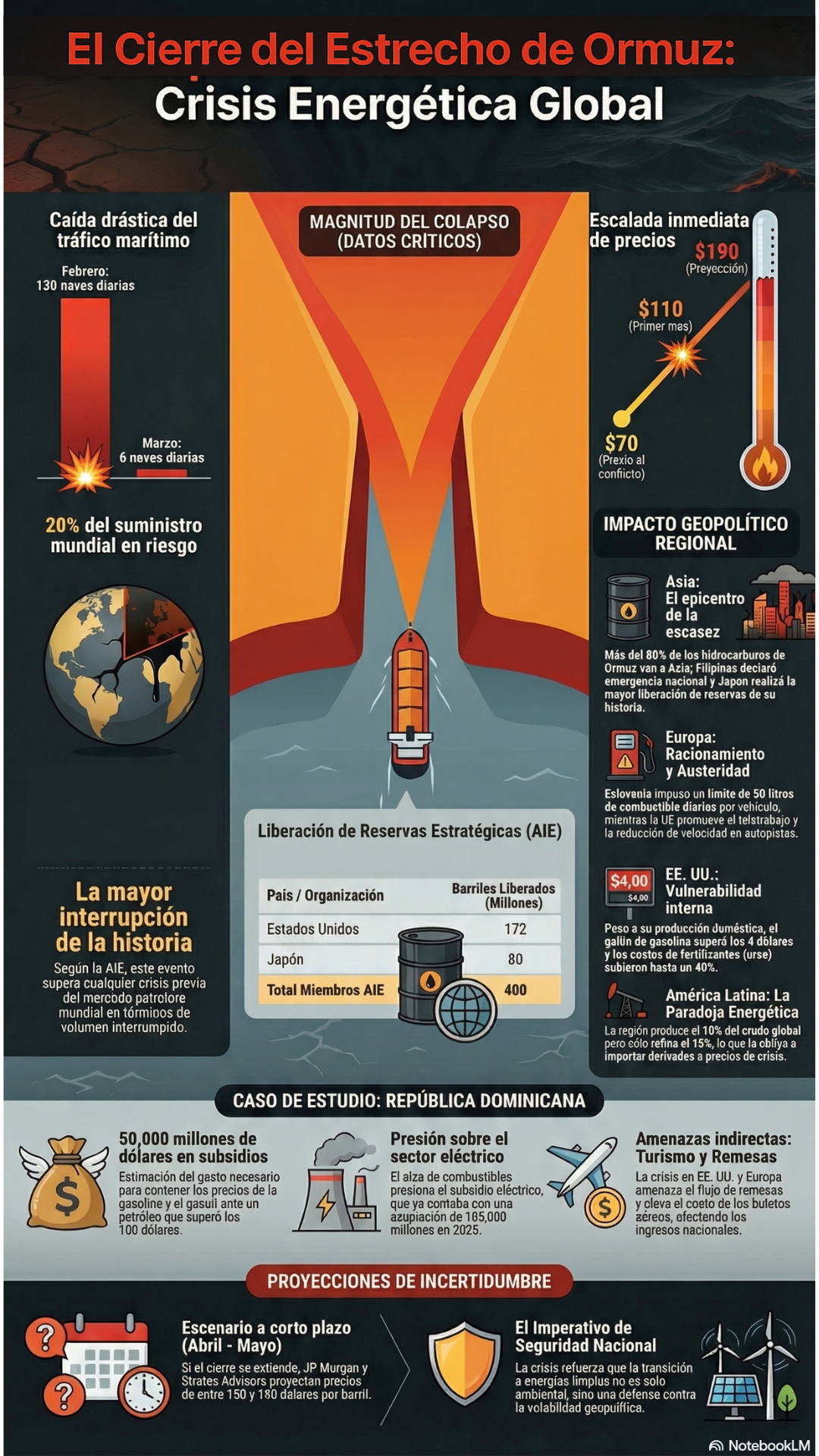 Desde que Irán cerró de facto el estrecho de Ormuz, por donde transita aproximadamente el 20% de todo el petróleo y el gas natural que se exporta en el mundo, desencadenando una crisis que ha disparado precios, vaciado reservas y obligado a gobiernos de los cinco continentes a tomar medidas de emergencia.