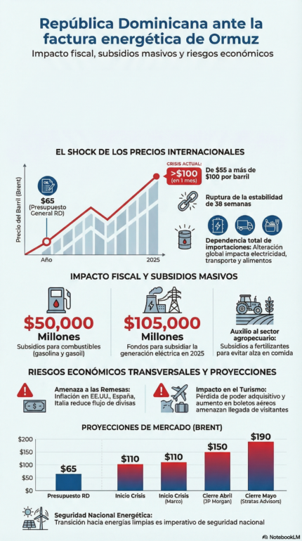 Para República Dominicana la ecuación es severa, no producimos petróleo, dependemos de las importaciones y cada alteración en el mercado internacional se transmite directo a la electricidad, el transporte, los alimentos y el funcionamiento de toda la economía.